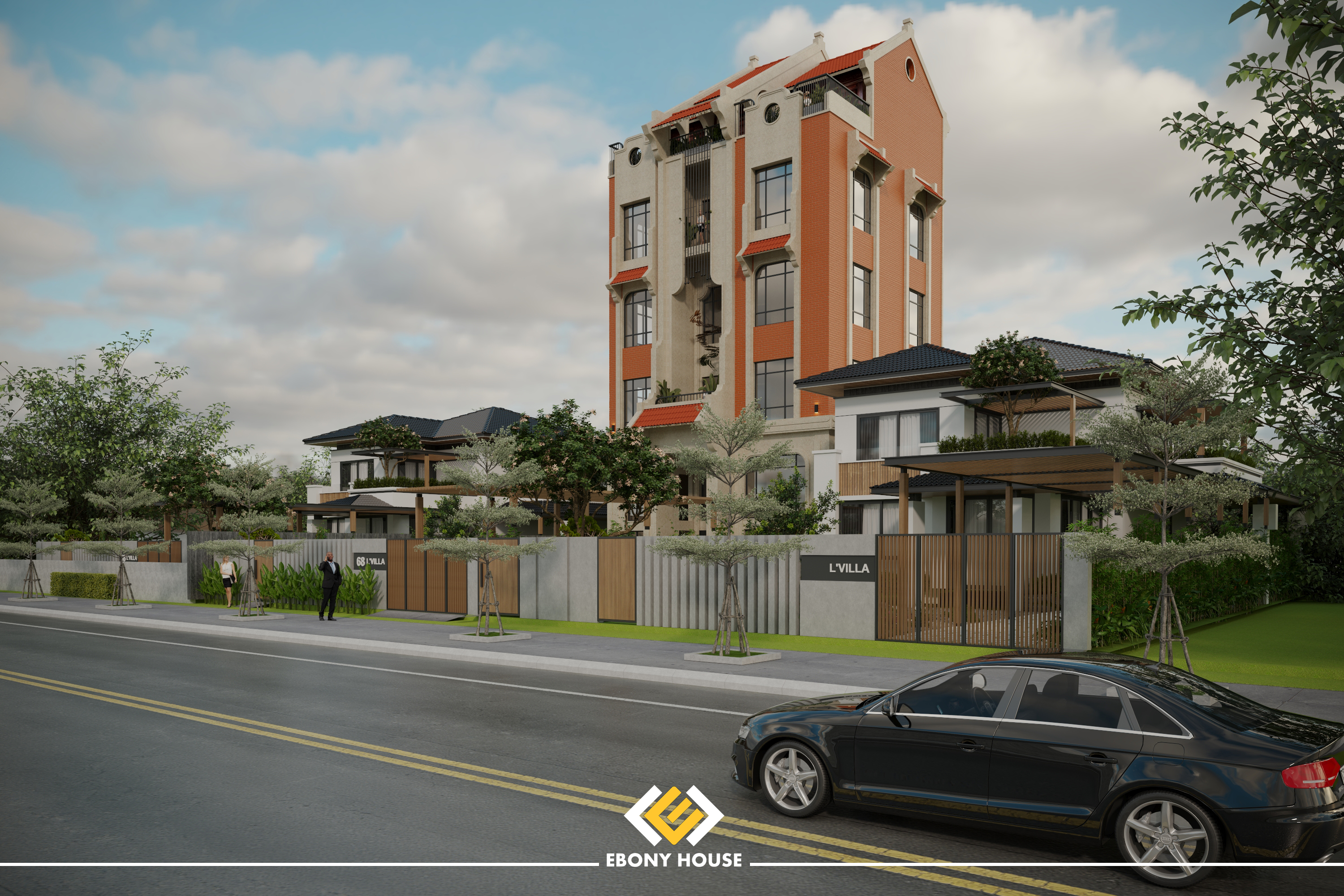 Một dấu ấn kiến trúc mang hơi thở Á Đông hoài cổ, gợi nhớ mái ngói đỏ, tường gạch xưa nhưng được tái hiện bằng ngôn ngữ thiết kế hiện đại.